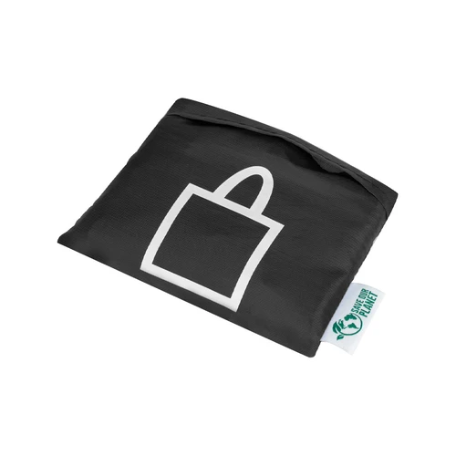 Bolsa de compras fabricada en tela reciclada RPET. Plegable para ser guardada dentro de bolsillo interior de 14 x 13 cm.