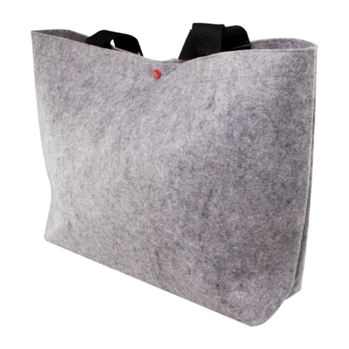 Bolsa de compras de Fieltro modelo "British". Tela Fieltro Poliéster 300g/m2. Capacidad 20 litros, tamaño 51 x 33 x 12 cm. Incluye broche rojo y manillas de poliéster negro.
