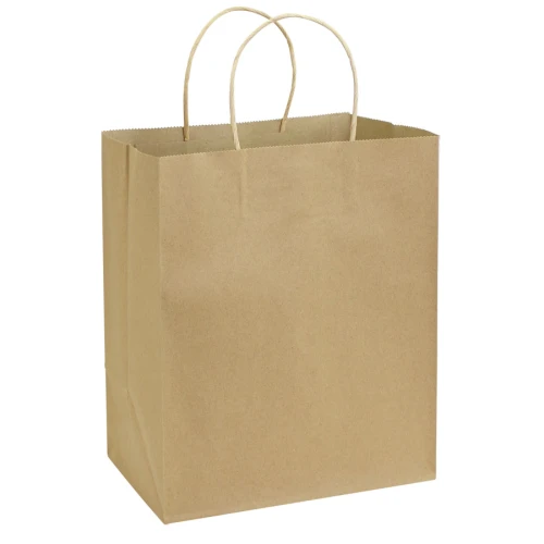 Bolsa de Papel kraft 100% reciclable y reutilizable. Fabricada en resistente material natural de 120g/m2. Contiene asas de papel prensado al tono.
