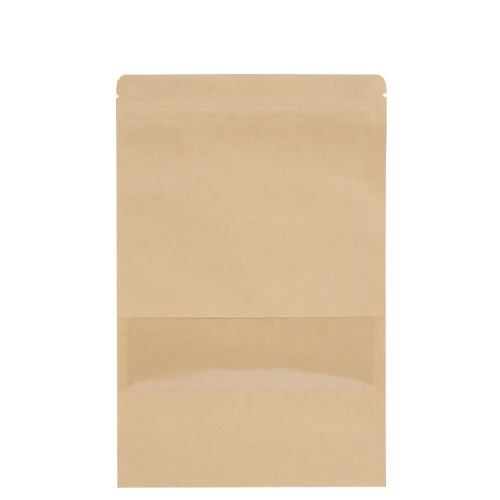 Bolsa hermética reutilizable, para guardar alimentos, fabricada en papel Kraft color natural, con protección interior PET + CPP (Cera Polipropileno), lo que permite guardar y conservar alimentos por más tiempo, y sin riesgo que la humedad o el polvo dañen los alimentos. Este producto es biodegradable, inofensivo para el medio ambiente y no tóxico para la salud humana. Contiene ventana plástica transparente para visualización interior. Sistema de cierre hermético reutilizable "Smart Zipper". Cuenta con fuelle inferior, lo que permite poner la bolsa de pie.