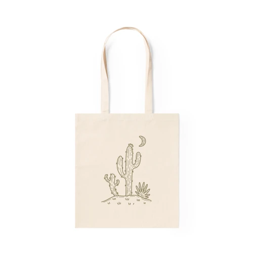 Bolsa fabricada en algodón 100%, de acabado natural y en gramaje extra de 300g/m2. De acabado cosido y asas largas reforzadas (70 x 2,5 cm). Resistencia hasta 10 kg de peso.