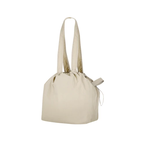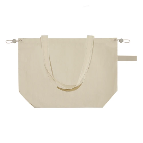 Bolsa confeccionada en suave y ligero Soft Nylon de 135g/m2. Con bolsillo interior y cierre con cordón ajustable. Asas largas de 70 x 3.5 cm. Incluye una cinta elástica para fácil plegado.