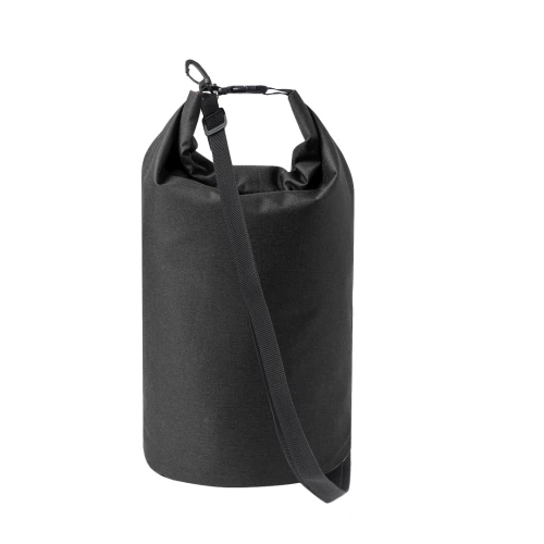 Bolsa impermeable de 10L de capacidad, fabricada en resistente poliéster 300D RPET. Cierre de seguridad, asa con hebilla de ajuste y mosquetón incluido. Etiqueta distintiva de RPET en el cierre. Disponible en variada gama de colores bitono. Presentada en bolsa individual reciclada. El material RPET se elabora a partir de plástico reciclado, para así fomentar la reutilización de residuos plásticos y ayudar a la sostenibilidad del planeta.