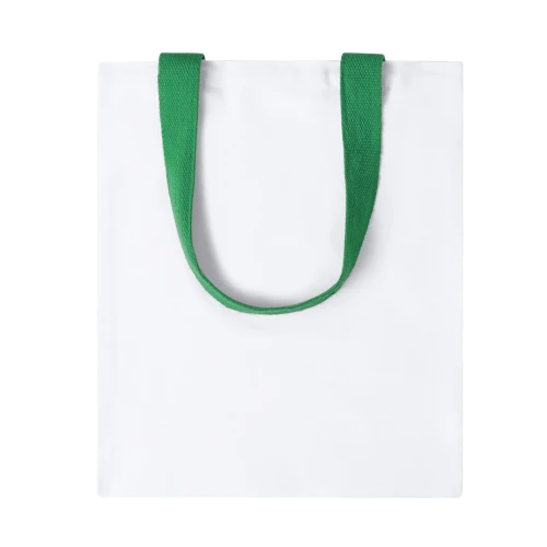 Bolsa de canvas de 230g/m2. En color blanco, con resistente acabado cosido y asas reforzadas en diferentes colores de 60cm de largo.