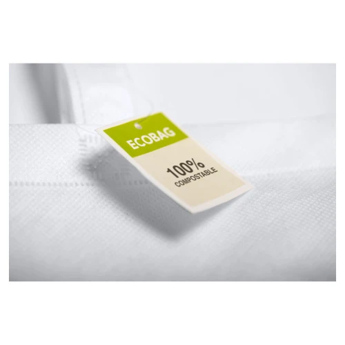 Bolsa de línea nature, fabricada en resistente material PLA -Ácido PoliLáctico-, que se obtiene a partir de recursos 100% naturales como el almidón de maíz, la yuca o la caña de azúcar, pudiendo convertirse en 100% compostable al final de su ciclo de vida útil. Tamaño 36x40 cm, de acabado termo sellado y con asas largas reforzadas de 68 cm. Resistencia de hasta 6 kg de peso.
