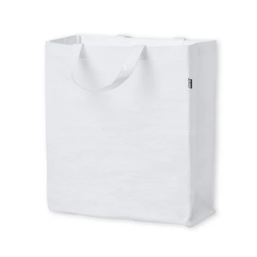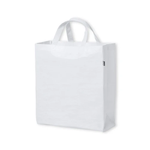 Bolsa de línea nature fabricada RPET laminado de 110g/m2. De acabado cosido, con fuelle y asas cortas reforzadas (35 x 2,5cm). Disponible en variada gama de colores, con distintivo RPET en etiqueta exterior. Resistencia hasta 5 kg de peso.El material RPET se elabora a partir de plástico reciclado, para así fomentar la reutilización de residuos plásticos y ayudar a la sostenibilidad del planeta.