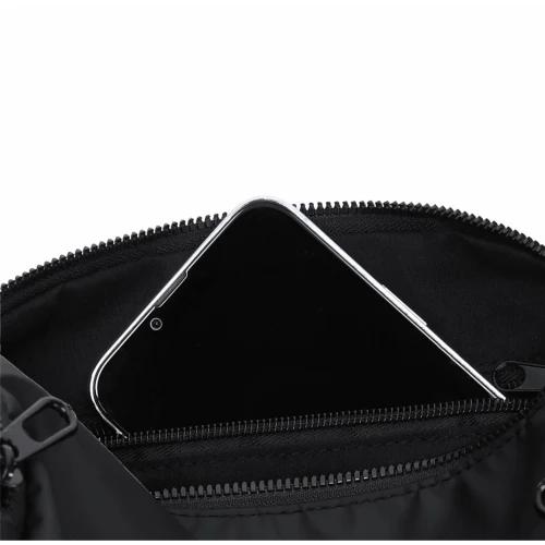 Bolso bandolera confeccionado en suave PU de alta calidad. Su diseño incluye un espacioso compartimento principal forrado, acompañado de un bolsillo interno con cierre de cremallera para mayor seguridad. Dispone de dos bolsillos laterales exteriores para un acceso rápido y fácil. Con cremalleras y tiradores metálicos. Equipado con correa bandolera ancha y ajustable, reforzada con hebillas de metal, garantizando un ajuste perfecto y cómodo en todo momento.