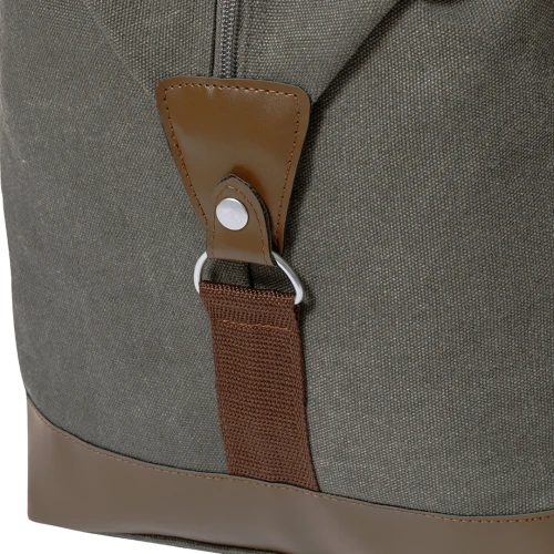 Elegante bolso fabricado en resistente canvas de 475g/m2 gris, con prácticas y resistentes asas en polipiel alrededor del bolso y esquinas reforzadas. Compartimento principal con cierre de cremallera a juego con las asas y cinta para hombro ajustable con mosquetón. Incluye bolsilo exterior de fácil acceso.Presentado en bolsa individual reciclada.