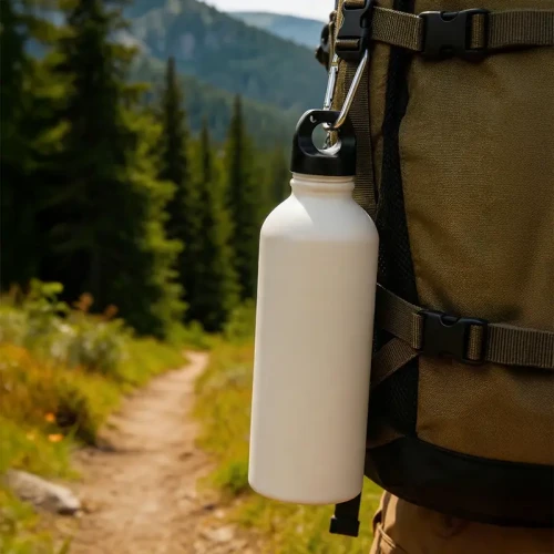 Botella reutilizable fabricada con cuerpo de PE y tapa de PP, en acabado natural. Cuenta con una tapa a rosca con orificio para transportar fácilmente. Es ideal para mantenerse hidratado durante entrenamientos, caminatas o jornadas laborales.