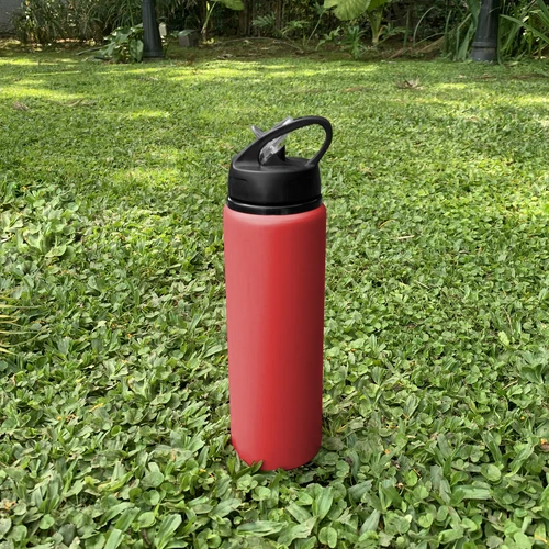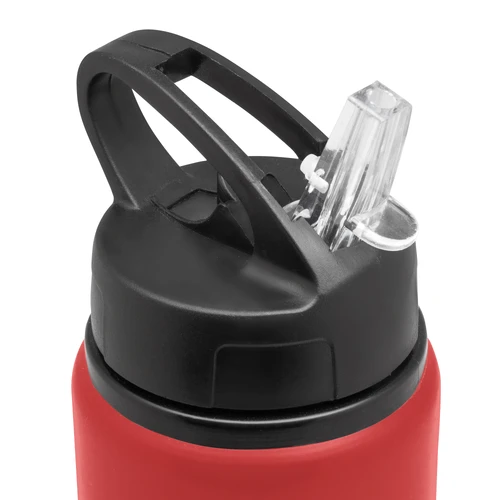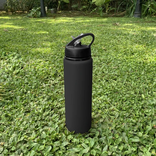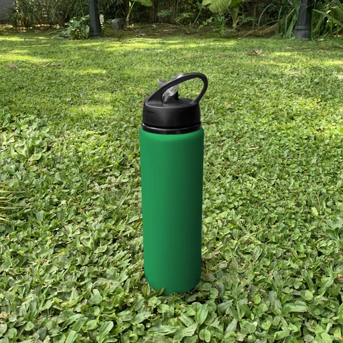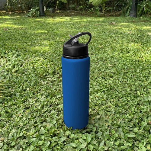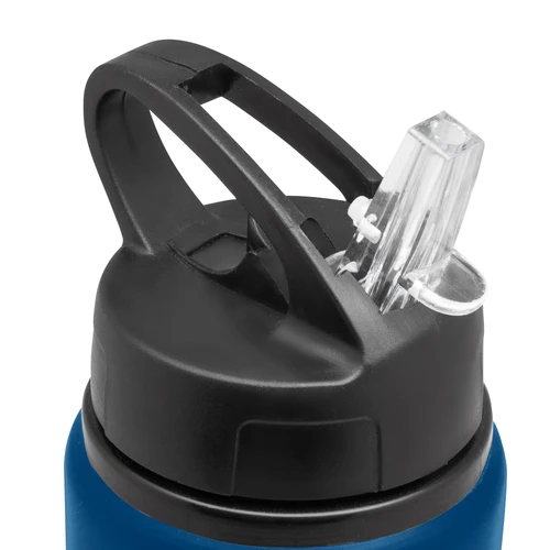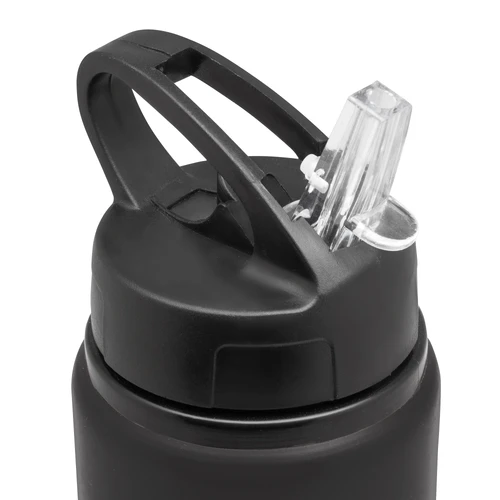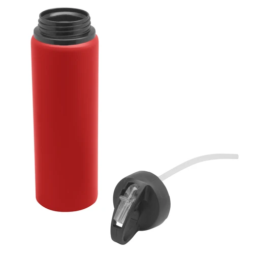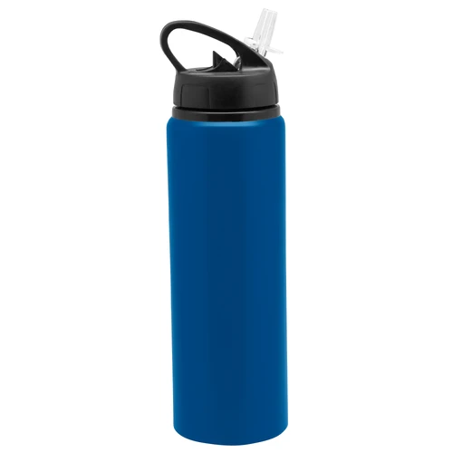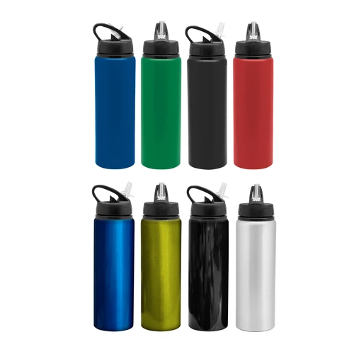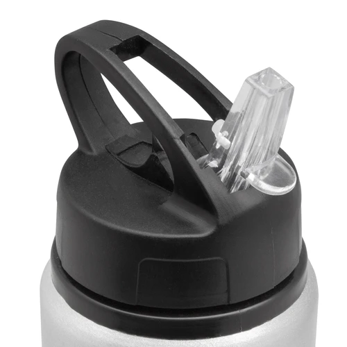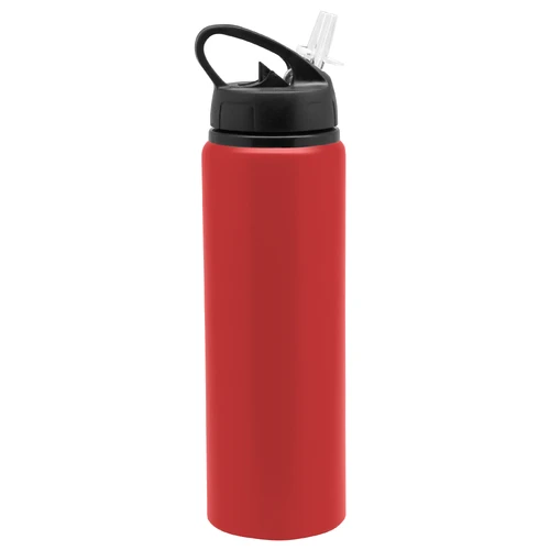 Clásica e Ideal para cualquier ocasión.Botella de aluminio con manija de agarre en la tapa, sorbete plástico y boquilla rebatible. Tapa a rosca de plástico. Medidas: Ø 7 x 25 cm.