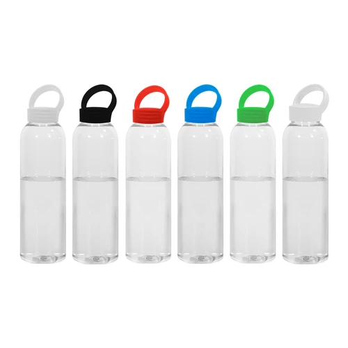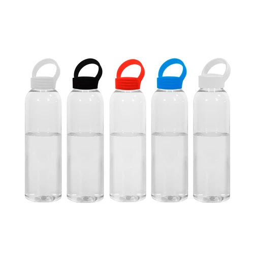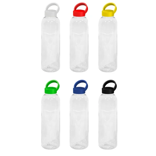 Botella de plástico transparente con tapa a rosca plástica.
