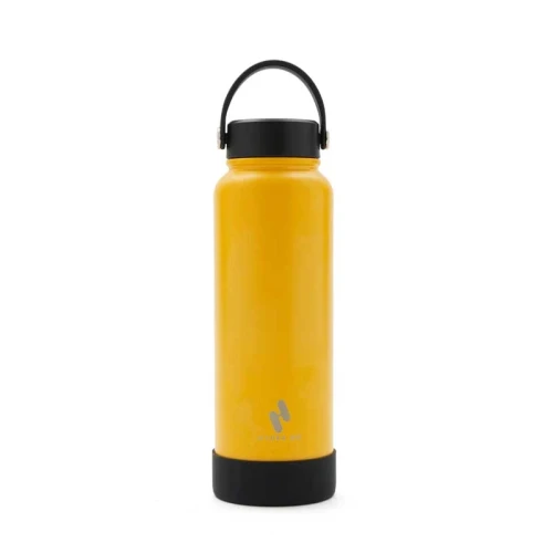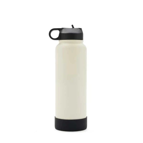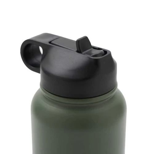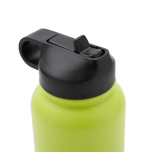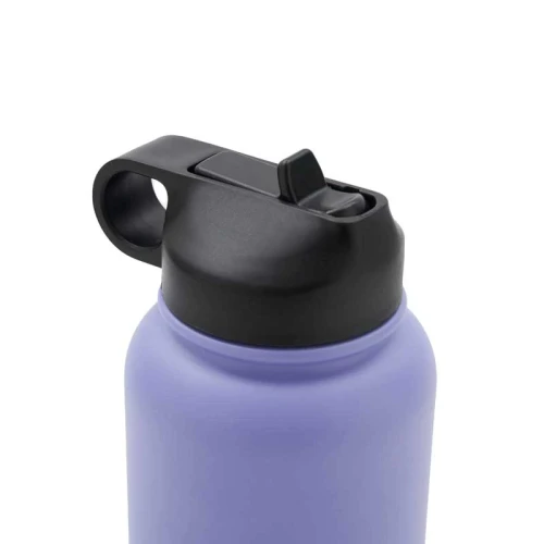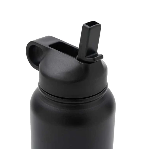 Botella isotérmica de 1000 ml, con doble pared de acero inoxidable 18/8, pintura en polvo y base de silicona antideslizante, mantiene tus bebidas frías durante 12 horas y calientes durante 8 horas. Cuenta con dos tapas negras a rosca, para que utilices la que te resulte más cómoda: la primera, con boquilla y anillo para facilitar el agarre, y la segunda con manija para transportarla. Incluye 2 sorbetes y cepillo limpiador.