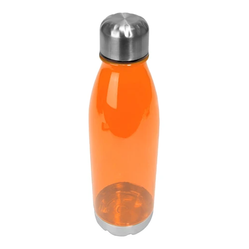 Botella plástica PET color translúcido, con fondo y tapa de Acero inoxidable, modelo "VIVID". Producto BPA FREE, para el contacto con líquidos y alimentos. Capacidad 700ml. Presentación en bolsa OPP + caja de regalo de cartón kraft.