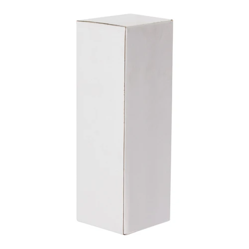Botella térmica de 550cc. con doble pared aislante de Acero Inoxidable, cuerpo blanco para Sublimación y tapa de madera de bamboo con asa plástica negra.