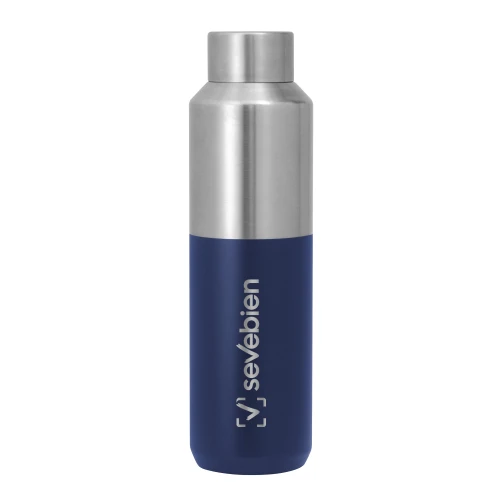 Aislamiento Superior para Bebidas Calientes y Frías.Botella doble pared, sellada al vacío. Interior de acero 304 y exterior de acero 201. Tapa a rosca de acero 201 con anillo de silicona. Pintura acabado mate en parte inferior. Mantiene hasta 8 hs la temperatura de las bebidas calientes y hasta 12 hs la de las bebidas frías.Medidas: Ø 7 cm x 24,5 cm.