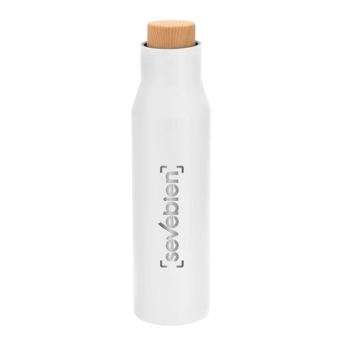 Ideal para llevar a tus actividades diarias.Botella doble pared, sellada al vacío. Interior de acero 304 y exterior de acero 201. Pintura acabado mate. Tapa a rosca con anillo de silicona, interior de acero 201 y exterior en polipropileno imitación bambú. Mantiene hasta 6 hs la temperatura de las bebidas calientes y hasta 10 hs la de las bebidas frías.Medidas: Ø 6,8 cm x 26 cm.