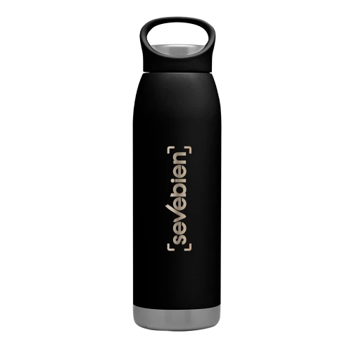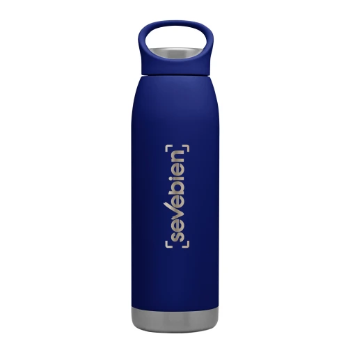Ø 7,6 x 26,5 cm. Capacidad 600 ml. Acero inoxidable. Botella doble pared, sellada al vacío. Botella con aislamiento térmico. Tecnología vacuum.Interior en acero 304 y exterior en acero 201. Pintura en colores mate. Tapa combinada en plástico del mismo color de la botella y acero inoxidable 201. Mantiene hasta 12 hs la temperatura de las bebidas calientes y hasta 24 hs la de las bebidas frías. Presentación en caja de regalo.