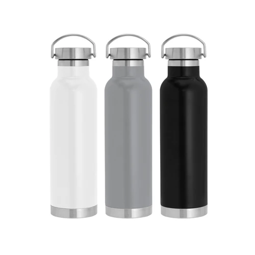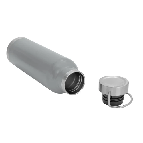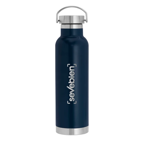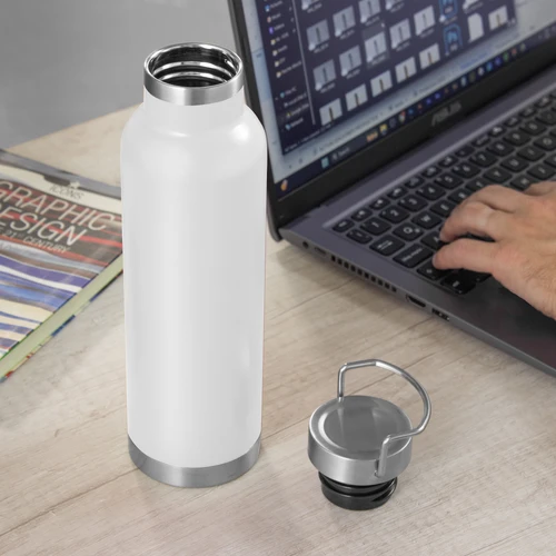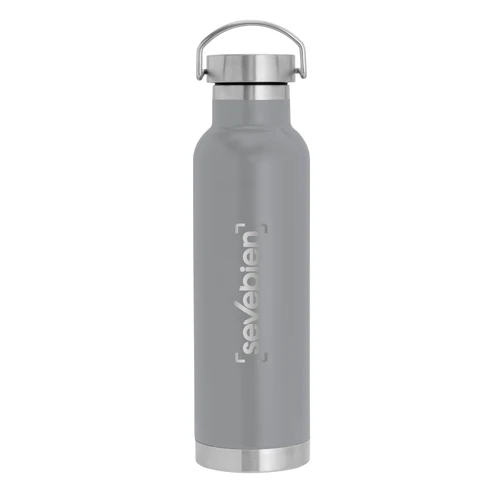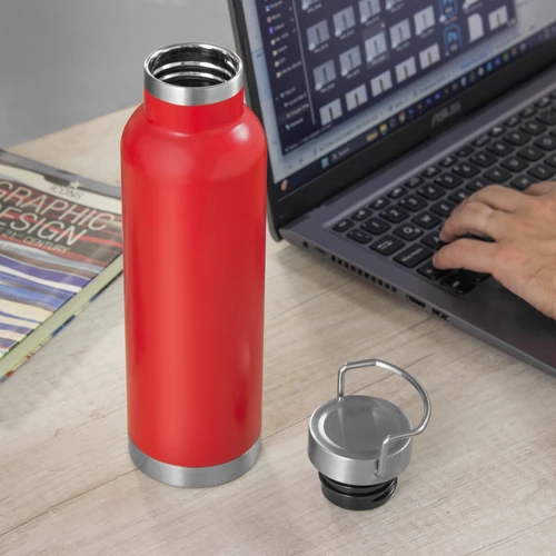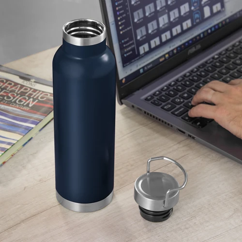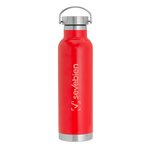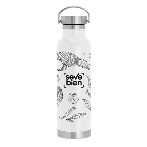 Ø 7,3 x 26 cm. Capacidad 650 ml. Acero inoxidable. Botella doble pared, sellada al vacío. Interior en acero 304 y exterior en acero 201. Tapa de acero a rosca con manija rebatible metálica . La medida de este termo es tan practica que con el tendras el liquido necesario para estar hidratado en el momento del día que elijas. Mantiene hasta 12 hs la temperatura de las bebidas calientes y hasta 24 hs la de las bebidas frías. Presentación en caja de regalo.