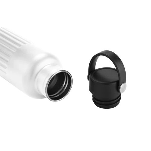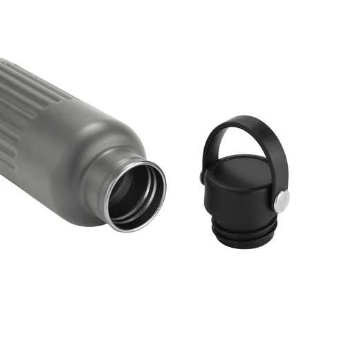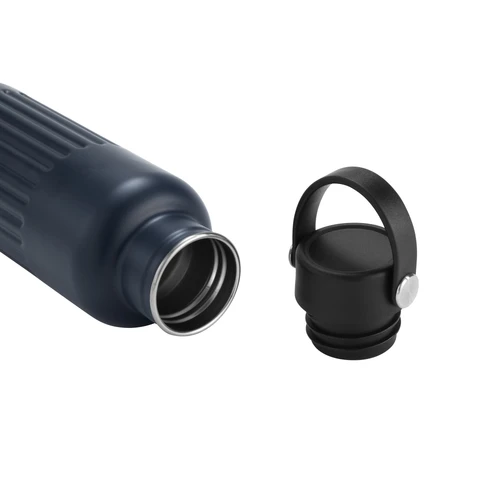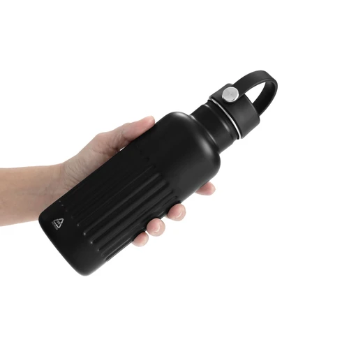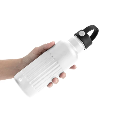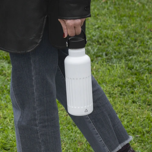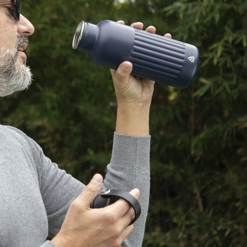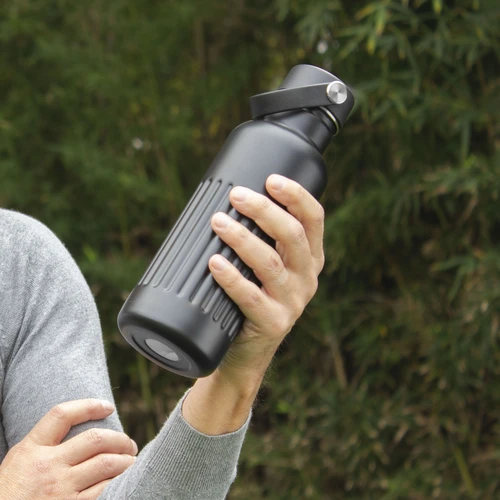 Resistente, pensada para el movimiento.Botella doble pared, sellada al vacío. Botella con aislamiento térmico. Tecnología vacuum. Interior de acero 304 reciclado y exterior de acero 201. Tapa a rosca de polipropileno, interior plástico. Asa reforzada de silicona. Pintura acabado semi mate. Cuerpo texturado para un mejor agarre. Mantiene hasta 8 hs la temperatura de las bebidas calientes y hasta 12 hs la de las bebidas frías.Medidas: Ø 7,5 x 22,5 cm.