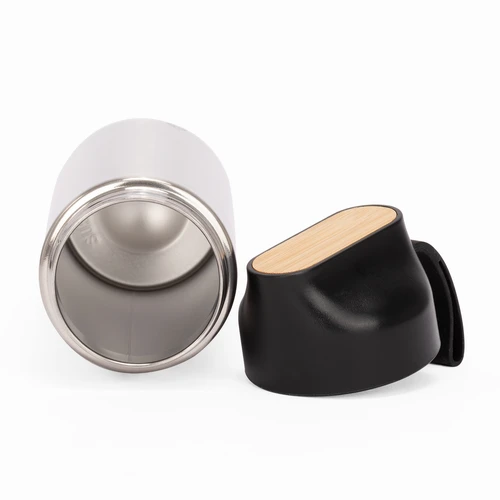 OJAI es una botella térmica de 600 ml que une resistencia, elegancia y compromiso ambiental. Fabricada en acero inoxidable reciclado con aislamiento de doble pared, mantiene tus bebidas frías o calientes por más tiempo, acompañándote en cada paso del día. Su tapa de plástico negro con detalle de bambú y asa de silicona añade un toque natural y funcional al diseño. OJAI es ideal para marcas que desean inspirar hábitos sostenibles con productos duraderos, prácticos y con propósito.