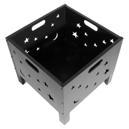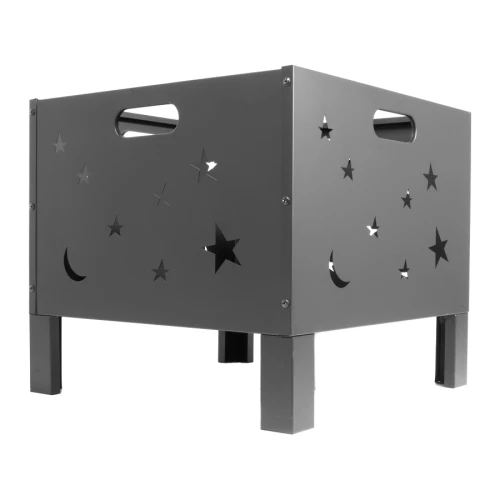 Brasero para Leña o Carbón, de Acero negro, modelo "Constelación". Bowl para fuego: 50 x 50 x 33cm x 10.6mm. Fácil de armar y transportar. Incluye Manual instructivo de armado en español.