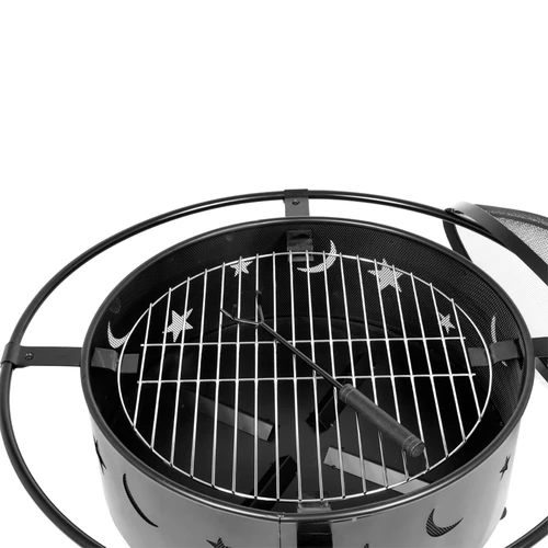 Brasero / Parrilla para Carbón o Leña, de Acero negro, modelo "Centauro". Altura para cocinar: 44cm. Rejilla cromada para cocinar: D50 x 4mm. Tubo exterior: D82cm x 14mm. Tapa con rejilla: D56.5 x 14.5cm. Bowl para fuego: D61 x 22cm x 0.8mm. 3 patas de 25cm x 30mm. Mango removedor de carbón de Regalo. Incluye Manual instructivo de armado en español.