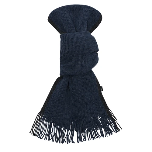 Suave y cálida bufanda confeccionada en cálido poliéster RPET. Fabricada en elegantes colores bitono con bordes en distinto color, terminación en flecos. Con logotipo RPET en etiqueta. Presentada individualmente en caja negra. El material RPET se elabora a partir de plástico reciclado, para así fomentar la reutilización de residuos plásticos y ayudar a la sostenibilidad del planeta.