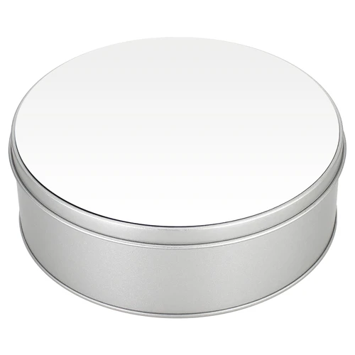 Caja Metálica redonda, con tapa y cubierta blanca para Sublimación. Presentación en bolsa de Polipropileno + caja de cartón forrado color natural. Ideal para usar como joyero, especiero o guarda-accesorios. Un regalo práctico y delicado para cualquier mujer.