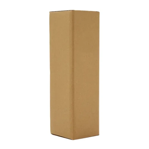Caja confeccionada en carton Kraft, elaborado tres capas: una exterior de 250g, una capa corrugada de 80g, y una interior de 85g.
