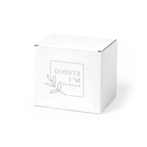 Caja de presentación especialmente diseñada para tazas. Tamaño 12x10,6x9 cm y fabricada en cartón reciclado corrugado de acabado blanco. En línea con la tendencia del mercado hacia la sostenibilidad integral del regalo, ofreciendo soluciones de origen reciclado con el fin de ayudar a la mejora y conservación de nuestro planeta.