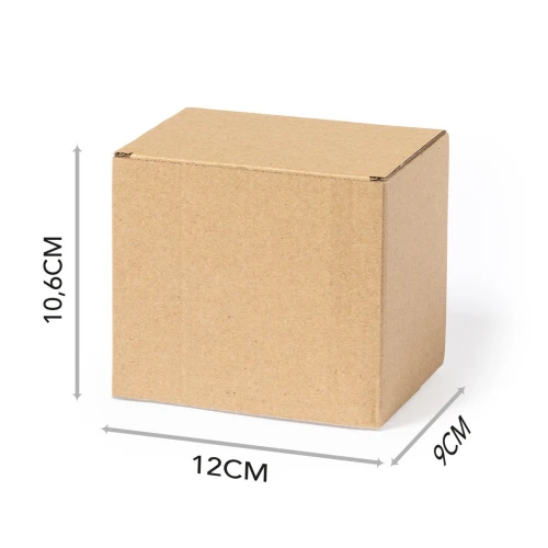 Caja de presentación especialmente diseñada para tazas. Tamaño 12x10,6x9 cm y fabricada en cartón reciclado corrugado de acabado kraft. En línea con la tendencia del mercado hacia la sostenibilidad integral del regalo, ofreciendo soluciones de origen reciclado con el fin de ayudar a la mejora y conservación de nuestro planeta.