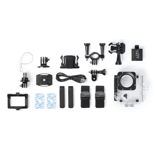 Cámara deportiva de alta calidad de captura de vídeo HD 720p, de diseño compacto y resistente, especialmente diseñada para uso intensivo. Incluye carcasa sumergible hasta 30m de profundidad y multitud de accesorios para ajuste en casco, manillar o cinturón, así como correas ajustables para cabeza y torso o un adaptador giratorio de 360º. La versatilidad y resistencia de esta cámara deportiva la convierten en el gadget perfecto para capturar, con una calidad excepcional, cualquier actividad deportiva. Con función cámara de fotos Full HD 1080p, ranura para tarjetas micro SD de hasta 32 GB de capacidad, sistema multilenguaje, y recargable mediante cable microUSB -incluido-. Presentada en atractiva caja de diseño.