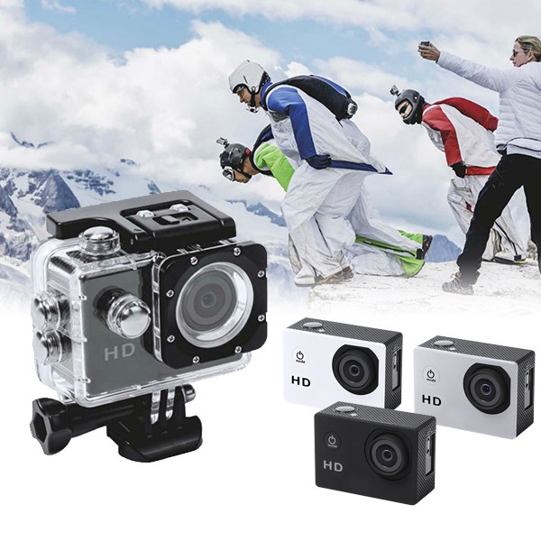 Cámara deportiva de alta calidad de captura de vídeo HD 720p, de diseño compacto y resistente, especialmente diseñada para uso intensivo. Incluye carcasa sumergible hasta 30m de profundidad y multitud de accesorios para ajuste en casco, manillar o cinturón, así como correas ajustables para cabeza y torso o un adaptador giratorio de 360º. La versatilidad y resistencia de esta cámara deportiva la convierten en el gadget perfecto para capturar, con una calidad excepcional, cualquier actividad deportiva. Con función cámara de fotos Full HD 1080p, ranura para tarjetas micro SD de hasta 32 GB de capacidad, sistema multilenguaje, y recargable mediante cable microUSB -incluido-. Presentada en atractiva caja de diseño. 720P. Pantalla LCD 2"". 14 Accesorios. Multilenguaje. Batería 900 mAh
