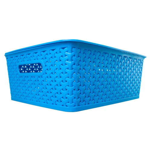 Canasto plástico organizador de 36.5 x 30 x 13.5 cm con tapa plástica. Diseño entrelazado tipo ratán. Capacidad 15 lt.