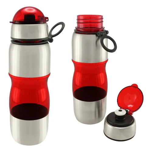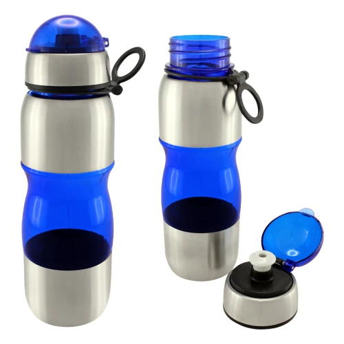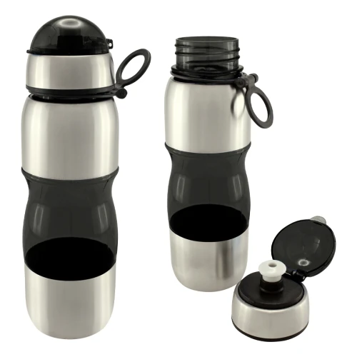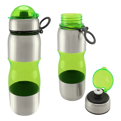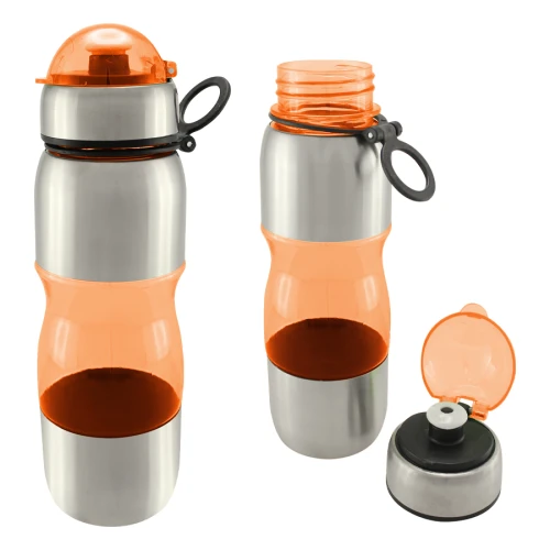 Botella deportiva modelo "Trend", de Acero Inoxidable con plástico rígido traslúcido. Para líquidos fríos (no térmico).
