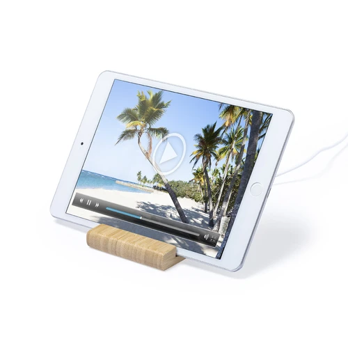Cargador inalámbrico 15W de línea nature, con soporte integrado para smartphones y tablets. Carcasa en bambú procedente de cortes naturales. Incluye cable micro USB de 1m y es compatible con dispositivos equipados con tecnología de carga inalámbrica. Con amplia superficie de marcaje, presentado en atractiva caja de diseño eco.