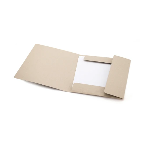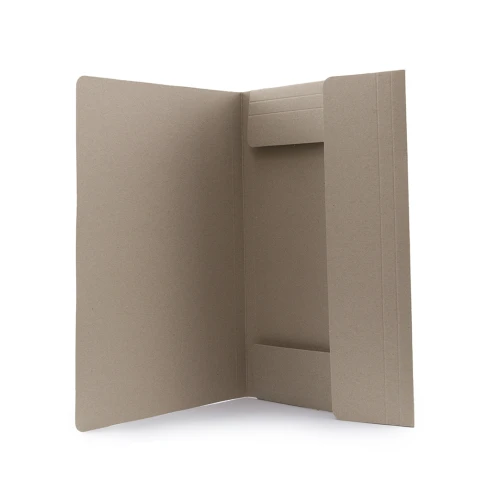 Carpeta ecológica de gran capacidad con cierre elástico en cartón reciclado flexible y con sistema de plegado tripe.
