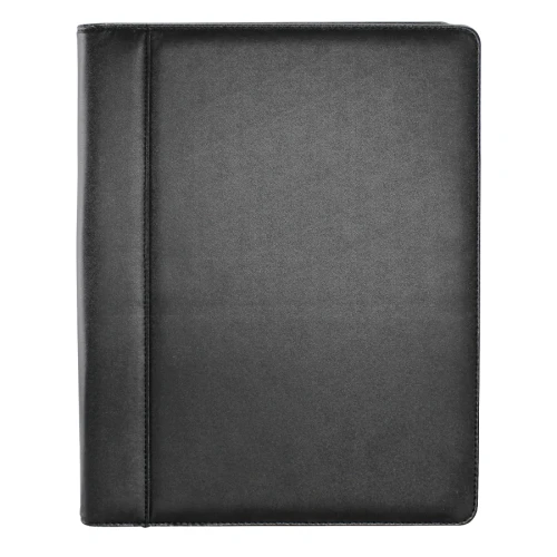 Carpeta Simil Cuero Negro. En el interior incluye Bolsillos para documentos tamaño A4, Compartimentos para Tarjetas Y Porta-Lápices.