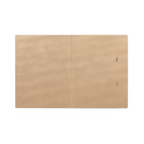 Carpeta de línea nature con exterior en corcho natural y banda central de lino en acabado crudo. Cierre elástico.