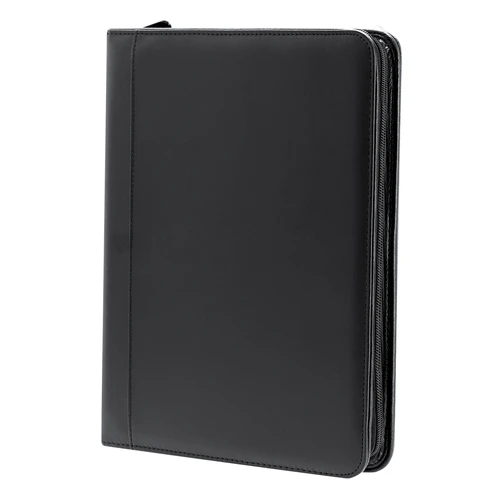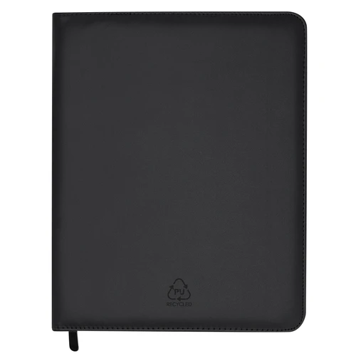 Elegante Carpeta con cremallera en PU reciclado. Con 4 compartimentos interiores en PU Reciclada y soporte para bolígrafo. Incluye bloc de notas de 25 páginas en blanco.