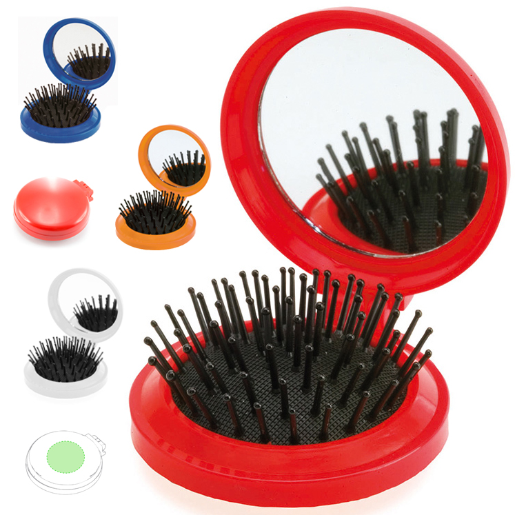 Cepillo plegable con espejo en variada gama de vivos colores. Plegable