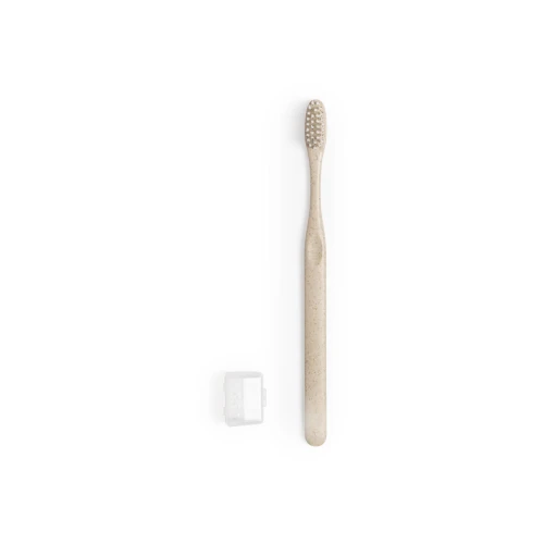 Cepillo de dientes de línea nature. Fabricado en caña de trigo, para así fomentar la utilización de materias primas naturales y reducir las emisiones contaminantes. Con capucha de protección.