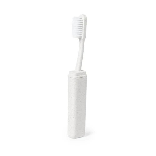 Cepillo de dientes plegable y de línea nature. Fabricado en caña de trigo, para así fomentar la utilización de materias primas naturales y reducir las emisiones contaminantes.