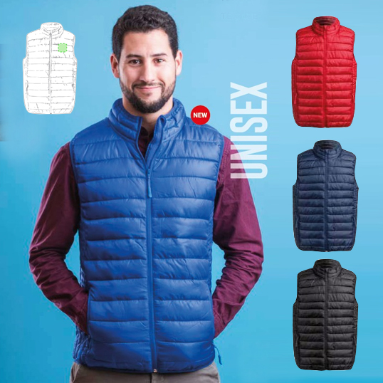 Chaleco en cálido y suave material 100% polyester. En material extra ligero, compacto, resistente al agua y cortavientos, con acolchado interior. Cierre de cremallera con cinta en tirador y amplios bolsillos laterales. Cremallera de cuello con tapeta y bolsillos laterales con tiradores. Incluye práctica funda de transporte. Disponible en tallas S, M, L, XL, XXL. Resistente al Viento y al Agua. Funda Poliéster
