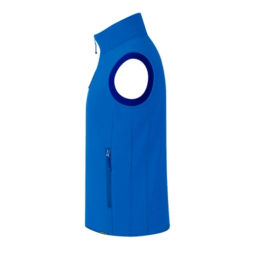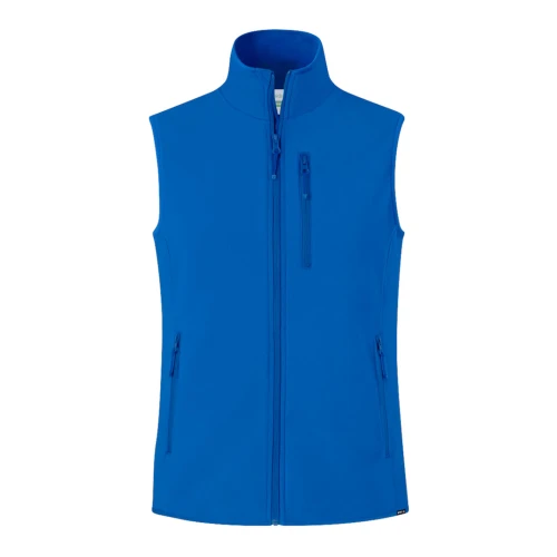 Chaleco impermeable y transpirable en combinación de materiales RPET, elaborados a partir de plástico reciclado, para así fomentar la reutilización de residuos plásticos y contribuir a la sostenibilidad del planeta: exterior en soft shell y elastano de 300g/m2 con interior en 100% poliéster microfleece. Con distintivo eco en dobladillo inferior de la prenda. Resistente al viento y al agua con cierre principal y bolsillos frontal en pecho y laterales de cremallera invisible y tiradores a juego. Disponible en variada gama de colores y en tallas S, M, L, XL, XXL.