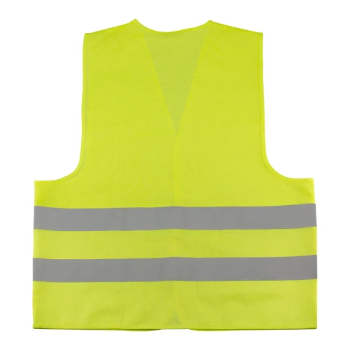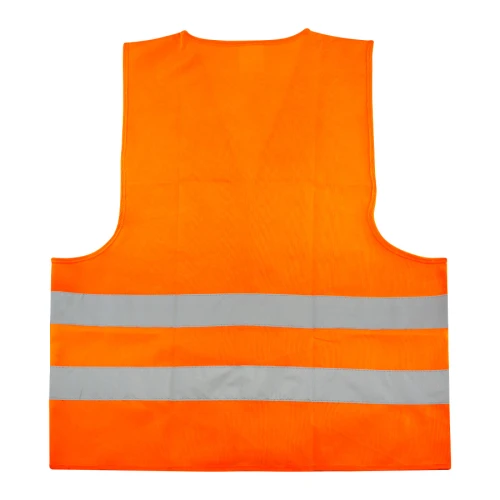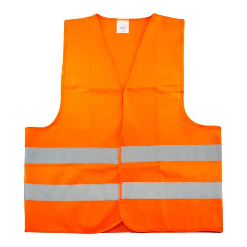 Chaleco Reflectante de Seguridad modelo "Basic", 100% tela poliéster 100 g/m2 fluorescente con bandas reflectantes color plateado de 5 cm. de ancho. Incluye cierre velcro. Cumple con norma vigente de Ley del Tránsito y norma legal EN 471.