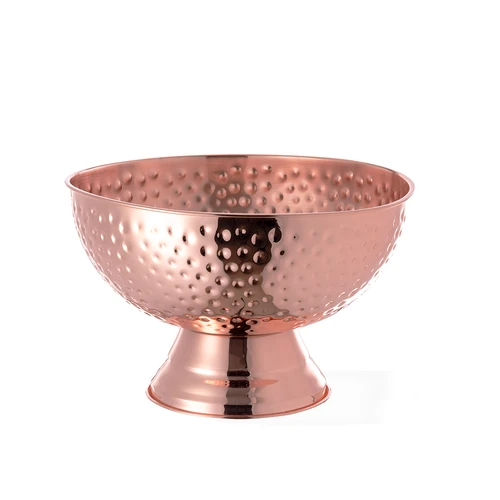 Elegante champanera fabricada en acero inoxidable con recubrimiento de cobre galvanizado. Capacidad de 8,5 l. Con original diseño en acabado brillo, es un perfecto accesorio para presentar con estilo las bebidas frías. Presentada en una exclusiva caja individual de diseño negra.
