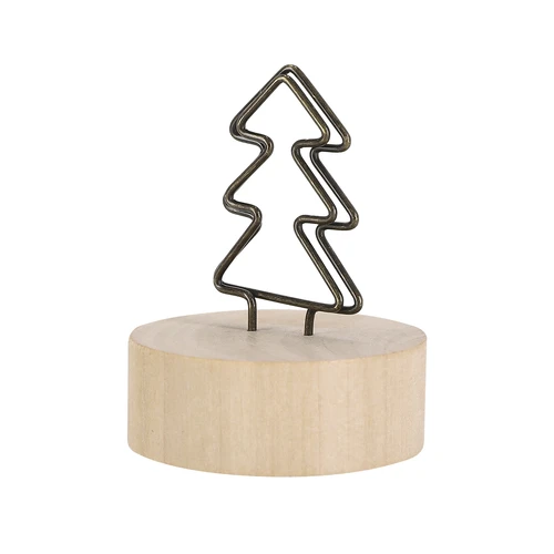 Clip de diseño navideño. Con clip metálico ideal para sujetar notas, fotos, tarjetas o añadir un detalle y base en madera natural.