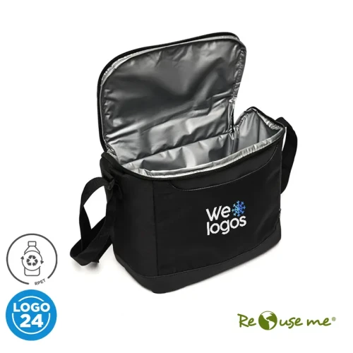 Cooler confeccionado en polyester sustentable RPET, fabricado en base a botellas recicladas. Interior térmico. Capacidad: 7 Lts. ReUseMe.