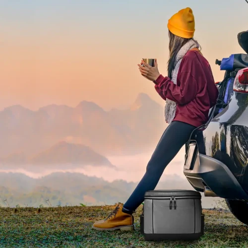 Realizado en 600D Polyester y 420D Dobby, con interior realizado en aluminio. Compartimiento principal con doble cierre y bolsillo frontal con velcro. Medidas: 34,5 x 31 x 29,5 cm. Capacidad: 31,5 Lts. Foto ilustrativa, no incluye bebida.